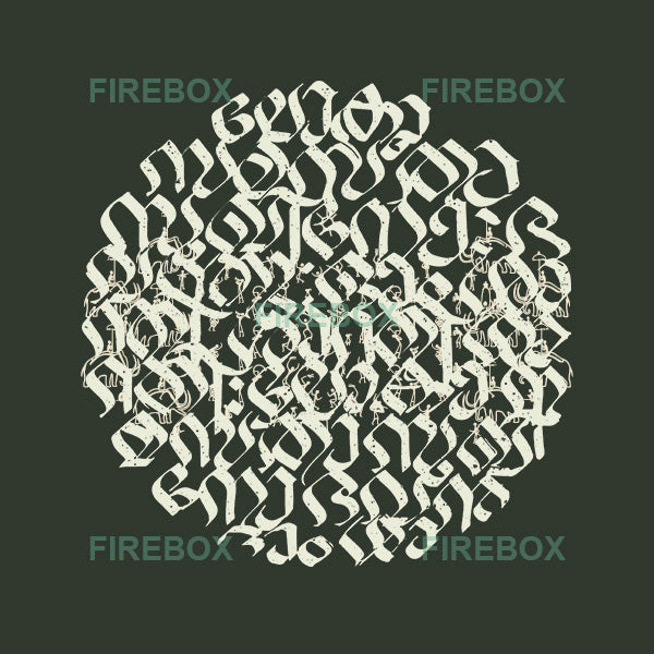 Faint green Discharge Screen on navy blue t-shirt.